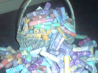 Squares Grab Bag These squares are 14 inch square of cotton percale. Colors range from pastel yellows to burgundy. Grab Bag Sizes 5 for $5, 10 for $10, 15 for $15, 20 for $20 20+ at $1 each square |